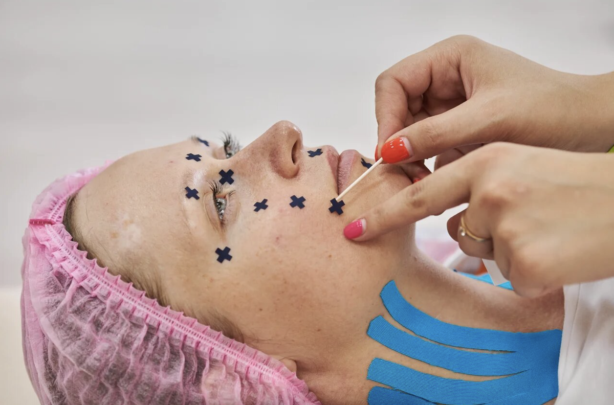 Кросс и аку тейпирование для эстетической коррекции лица