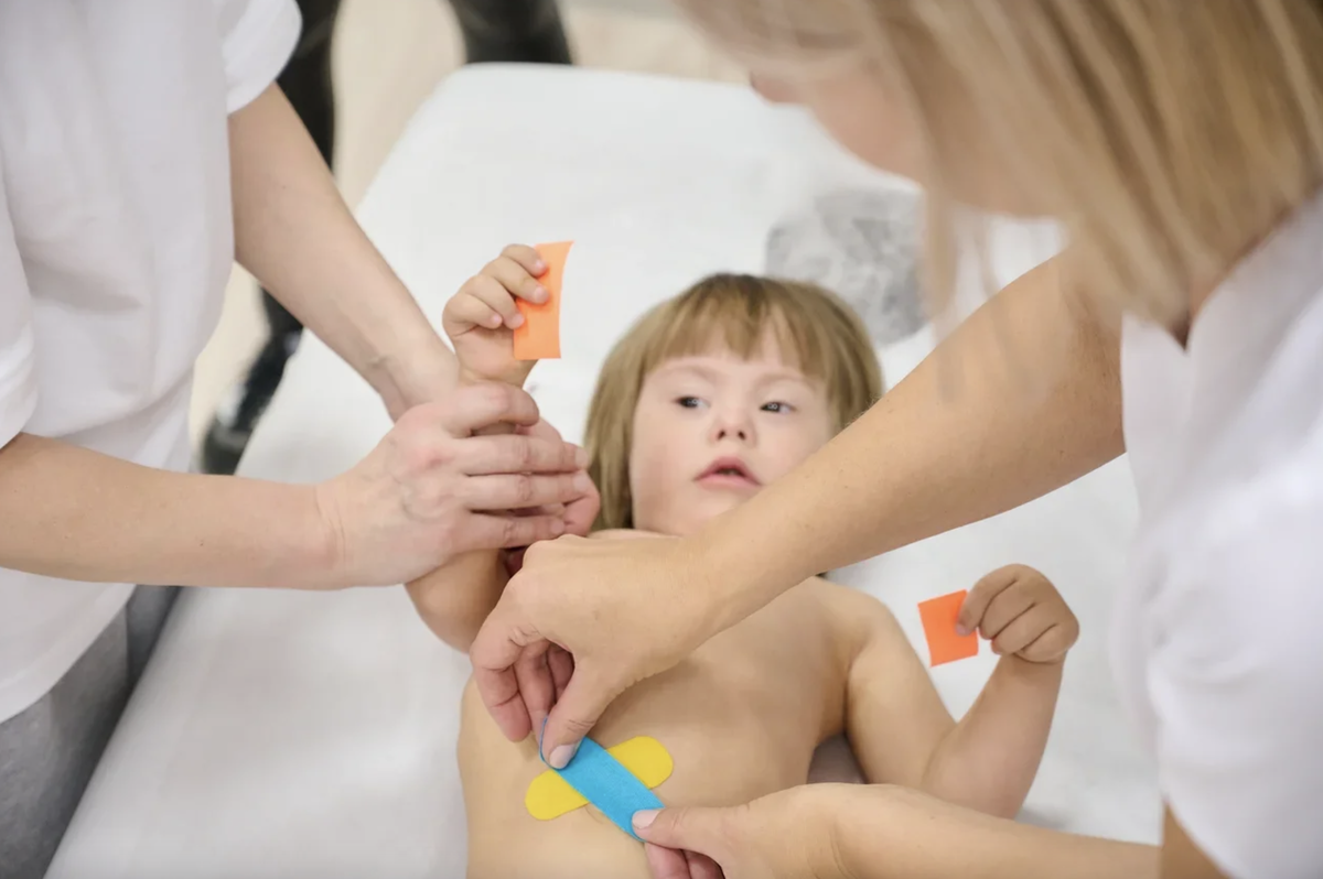 Кинезио тейпирование у детей с синдромом Дауна – это мощный инструмент поддержки таких детей, страдающих большим количеством ортопедических патологии. С помощью кинезио тейпирования можно добиться существенного сокращения задержки моторного развития. Метод позволяет провести профилактику таких ортопедических проблем, как: патология тазобедренных суставов (которая встречается у 5-18% детей с синдромом Дауна), патология коленных суставов (17-20%), плоско-вальгусные стопы (100%), нарушение осанки (более 50% в подростковом возрасте).