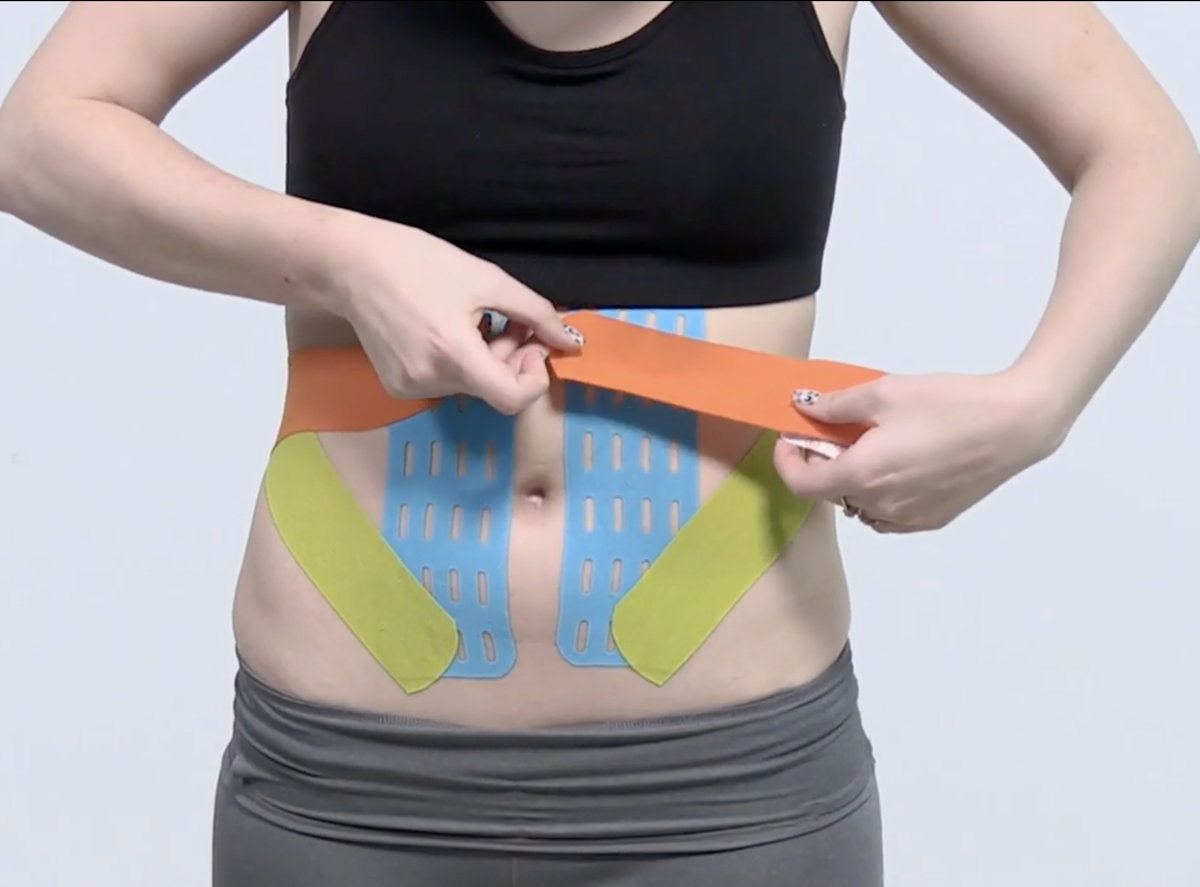 Тейпирование при продольных растяжках на животе