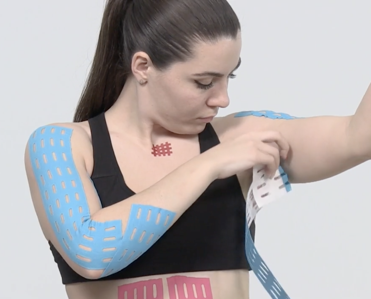 Тейпирование для коррекции обвисшей кожи на верхних конечностях